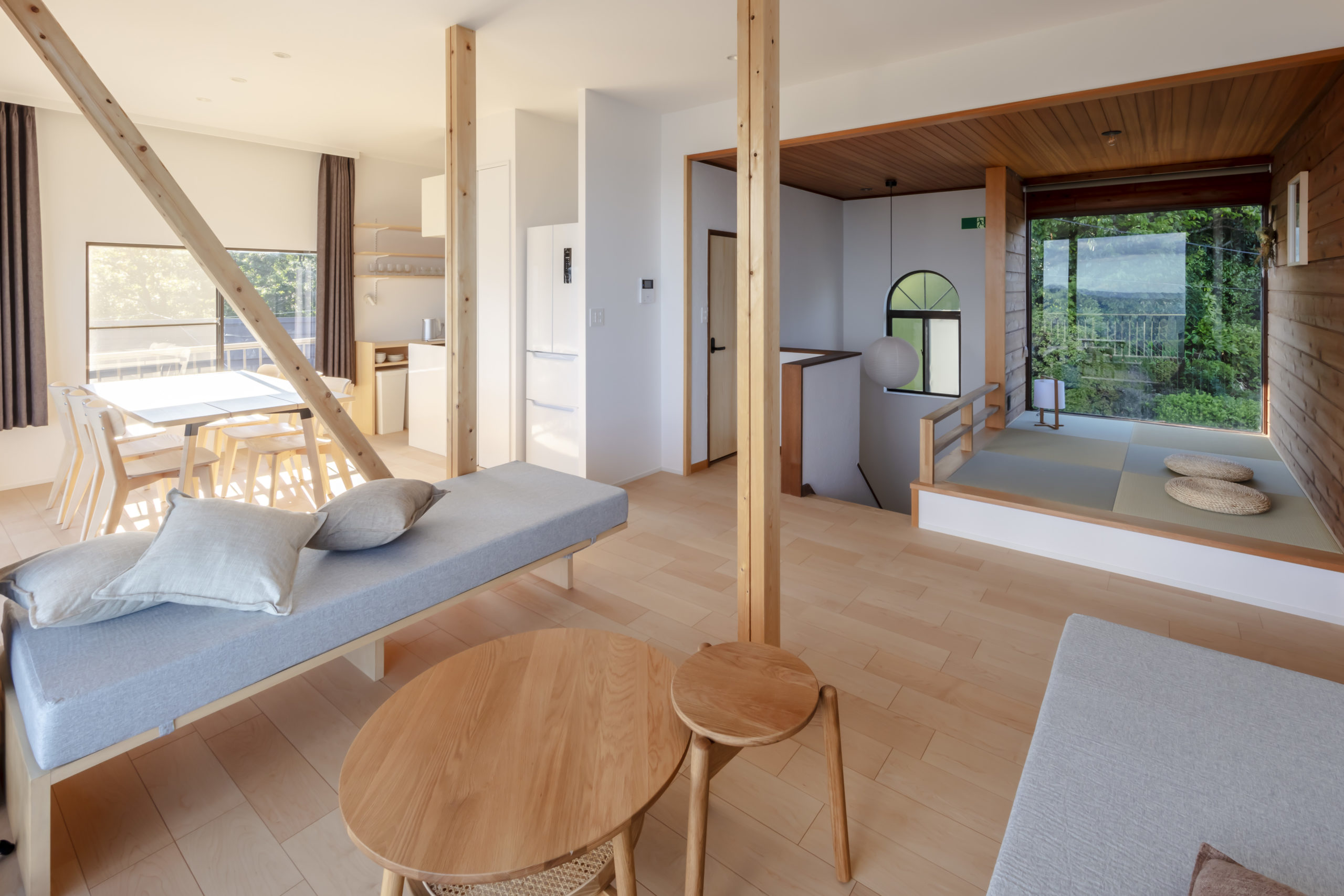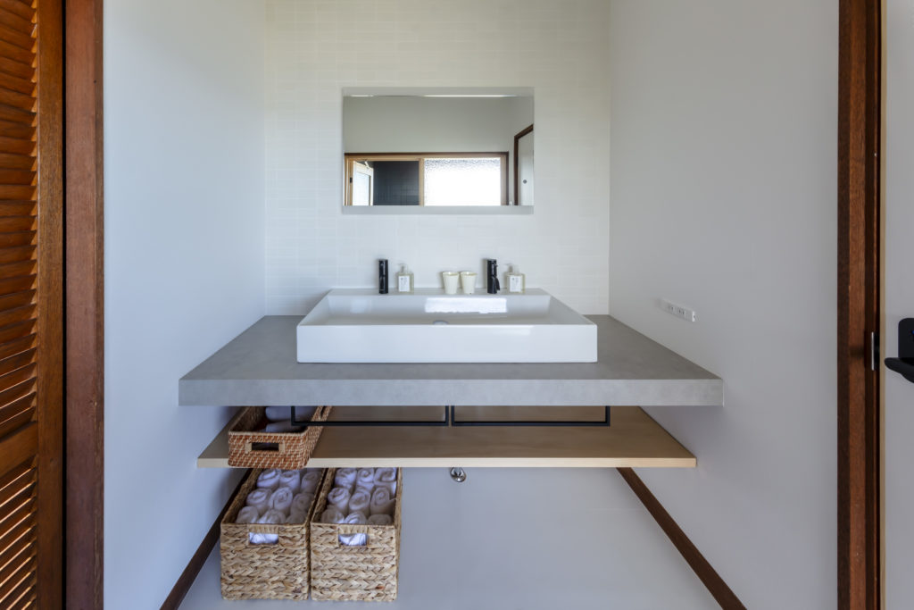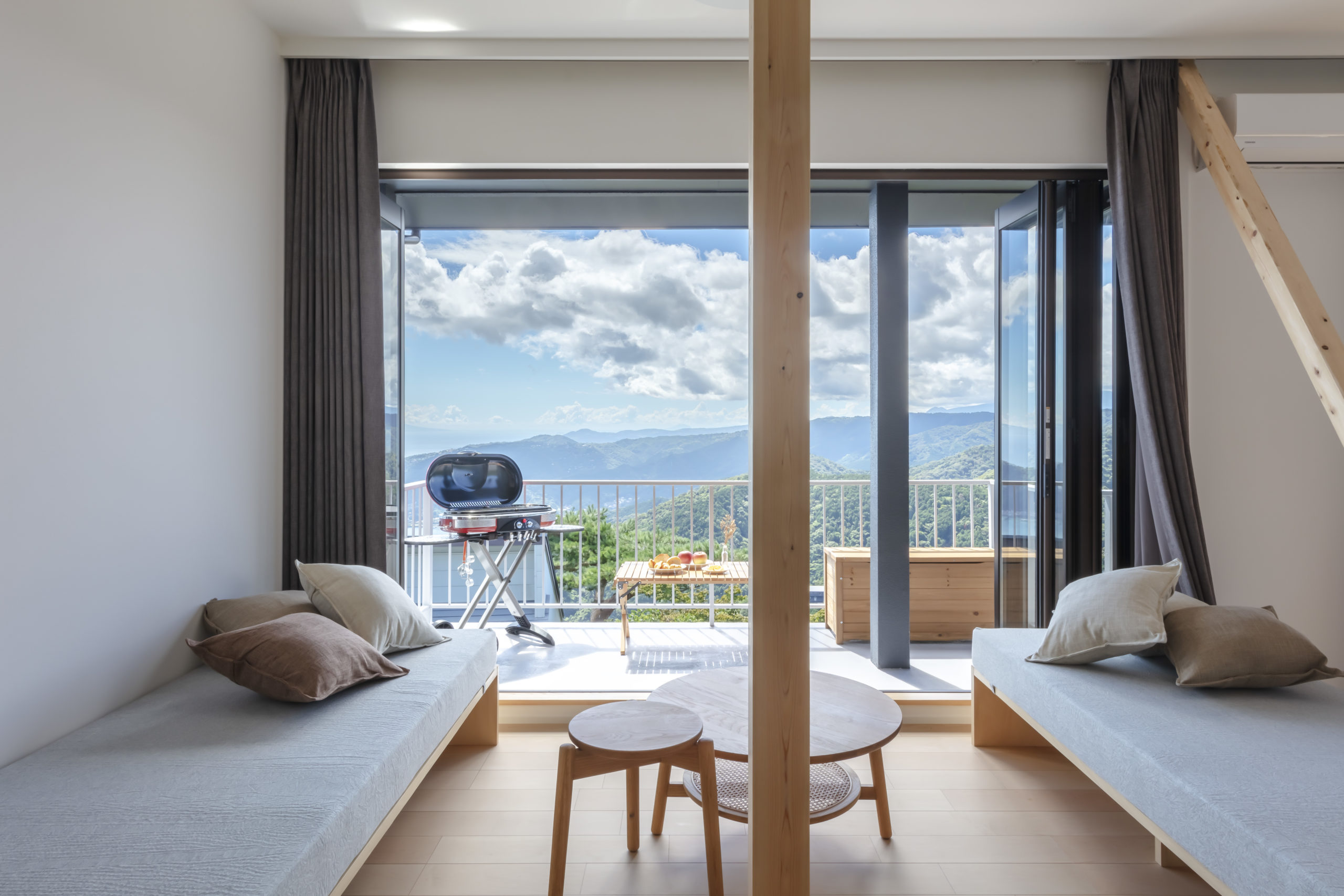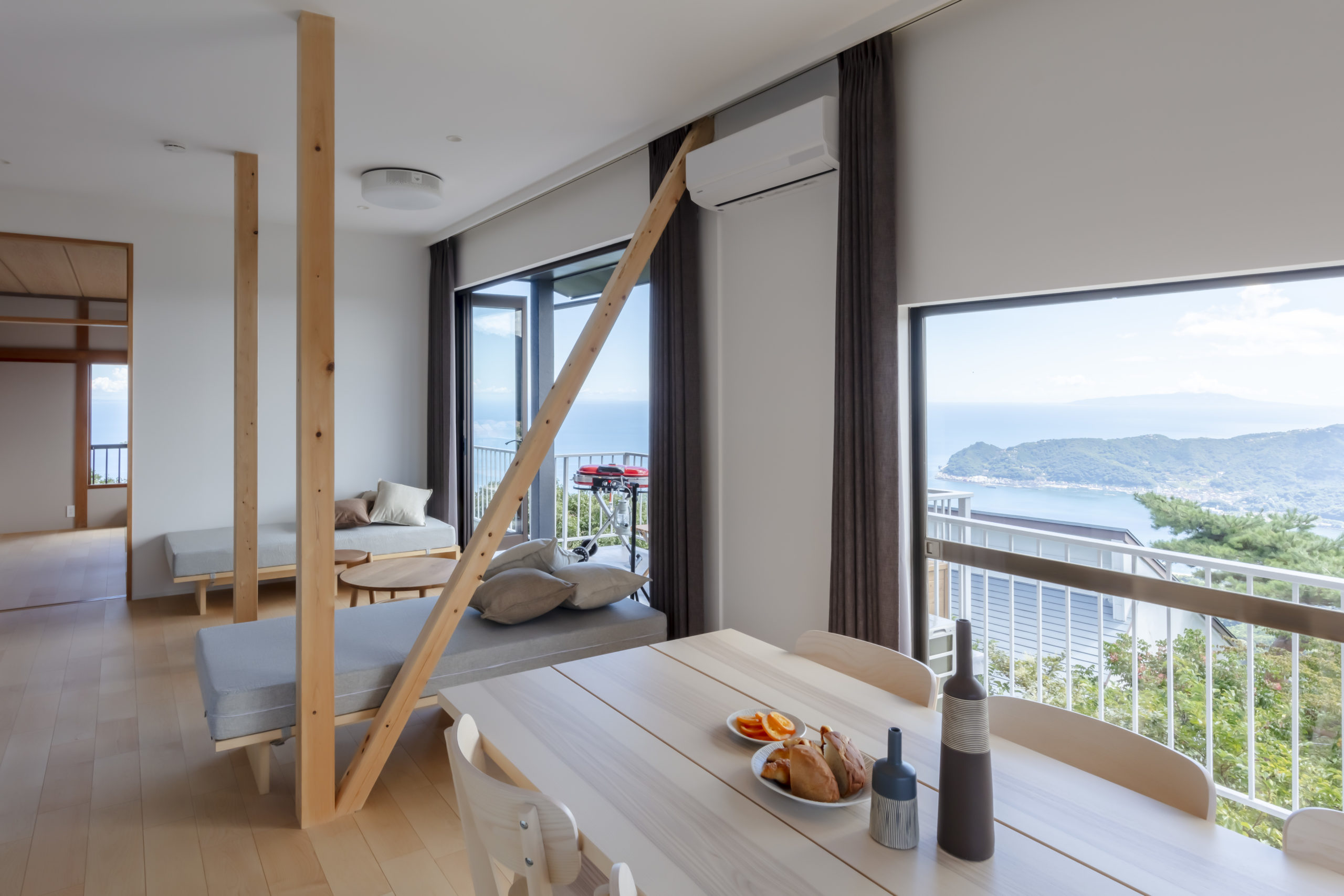 “amazing ocean view”という宿名に込められた想いを、空間設計に丁寧に落とし込みました。2階にリビングを配置し、隣接するバルコニーを拡張。