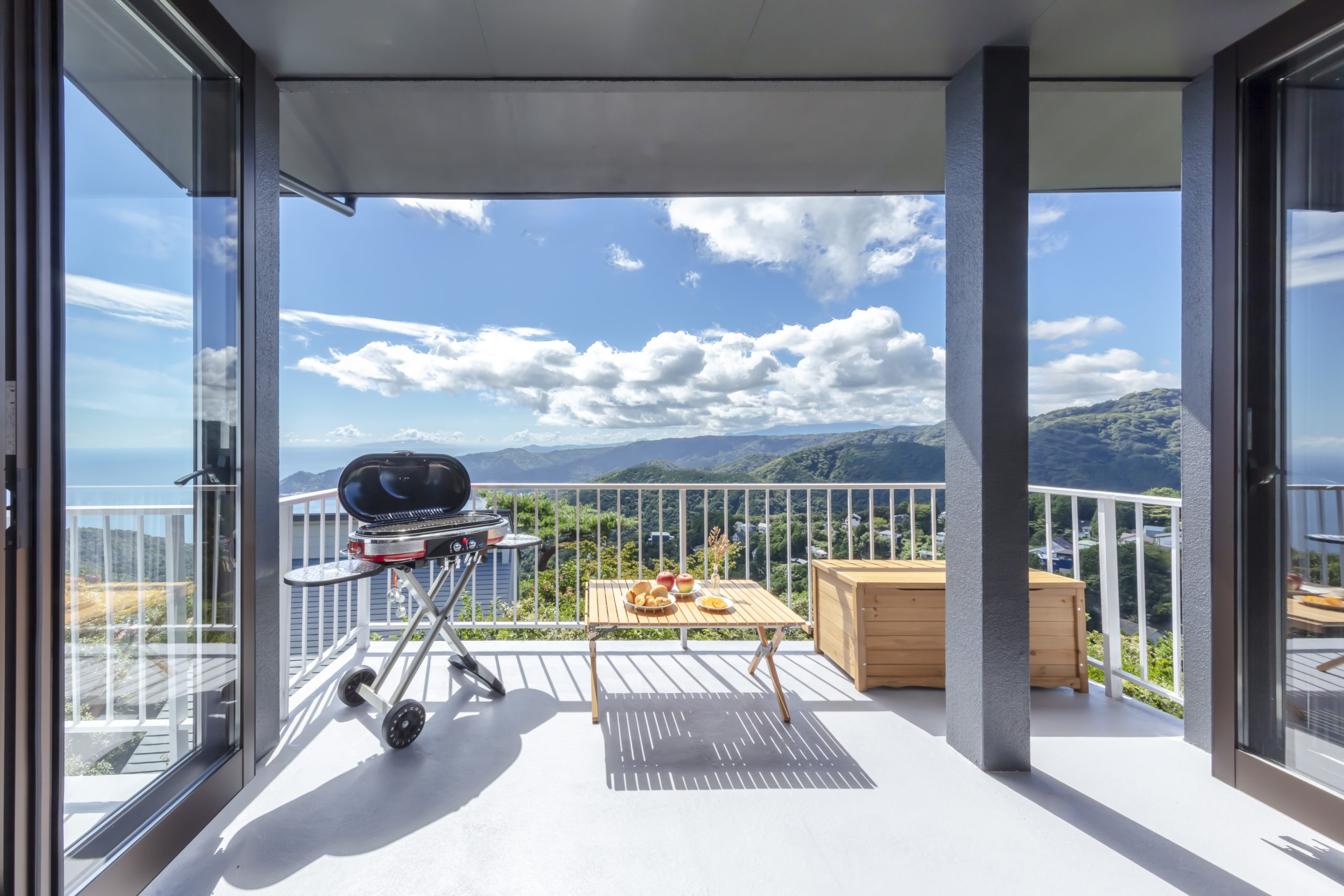フルオープンサッシを採用することで、室内にいながらも海と空が一体となるような開放感を実現しています。